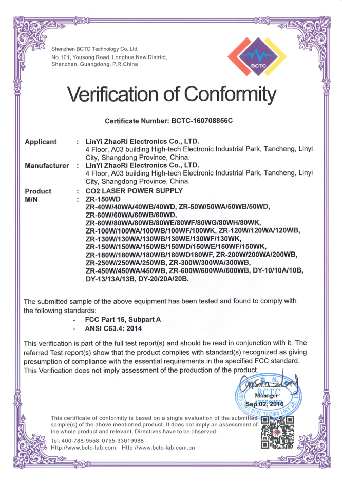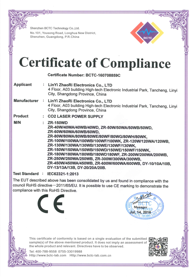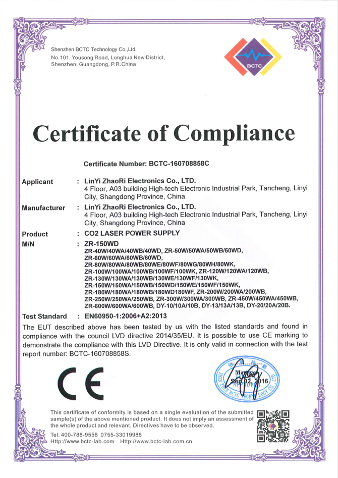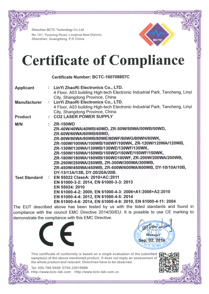 • 山東朝日電子有限公司是一家從事CO2激光電源研發(fā)、生產(chǎn)、銷售于一體的專業(yè)廠家,主要產(chǎn)品為40W/50W/60W/80W/100W/120W/130W/150W/200W/300W/400W二氧化碳激光電源。公司自2003年成立以來,始終堅持“以質(zhì)量求生存,靠信譽謀發(fā)展”的理念.公司擁有業(yè)界高素質(zhì)管理人才和技術(shù)精英,所有原材料都經(jīng)過嚴(yán)格細(xì)致的檢測檢驗,生產(chǎn)流程嚴(yán)格貫徹執(zhí)行ISO9001質(zhì)量管理體系。卓越的品質(zhì)、合理的價格和全體員工的不懈努力使我們的公司已穩(wěn)步走在行業(yè)的前列。